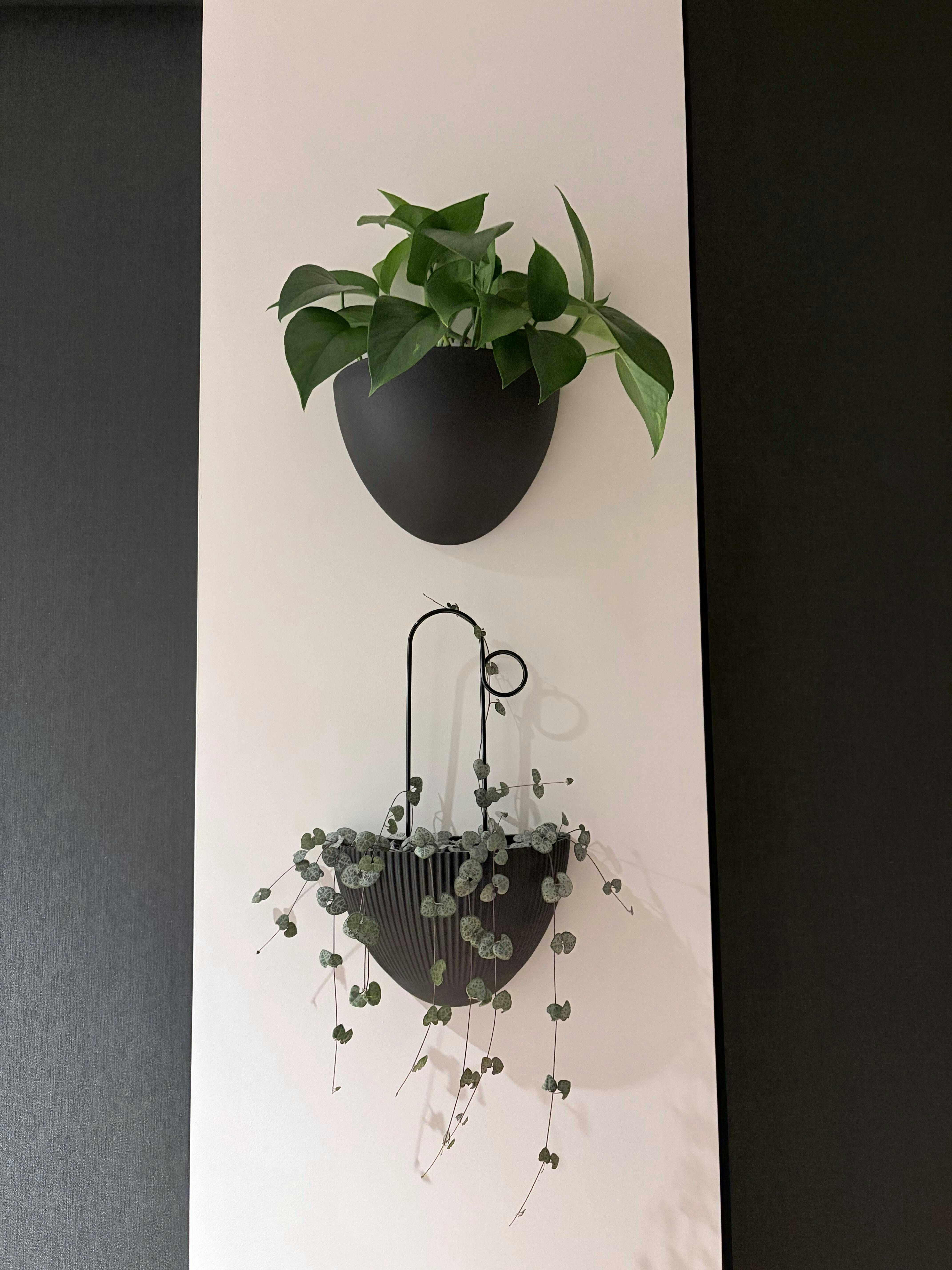 This is for the Black Bump, which measures 30cms tall and 5cms across the main loop, with a 3cm width for the bump, which you can turn to have the bump on the left or the right. The first photo with one of my Glacier Pothos babies in a clear pot, shows the Black Bump Stake combined with an 11cm clear TEKU pot.